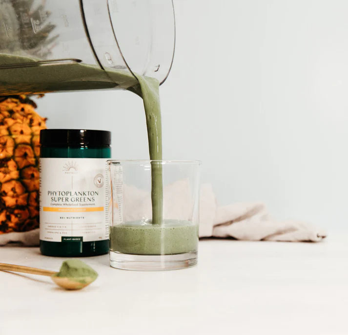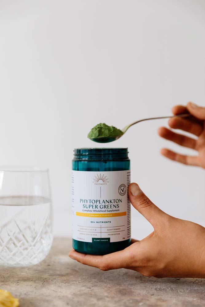 Phytoplankton Super Greens is a powerful daily supplement packed with alkaline superfoods, antioxidants, adaptogens, probiotics, and ULTANA™ Phytoplankton.
